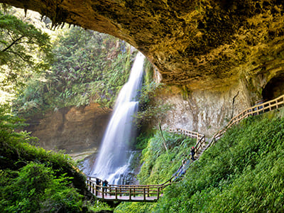 舉目欣賞松瀧岩瀑布,磅礡的氣勢和秀麗的景致。