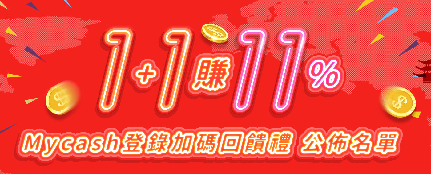 ※ 以下Mycash訂單回饋點數,將於12/10前進行點數發放作業,使用效期自發送日期起一年內有效。相關規範請查閱MyCash使用辦法
