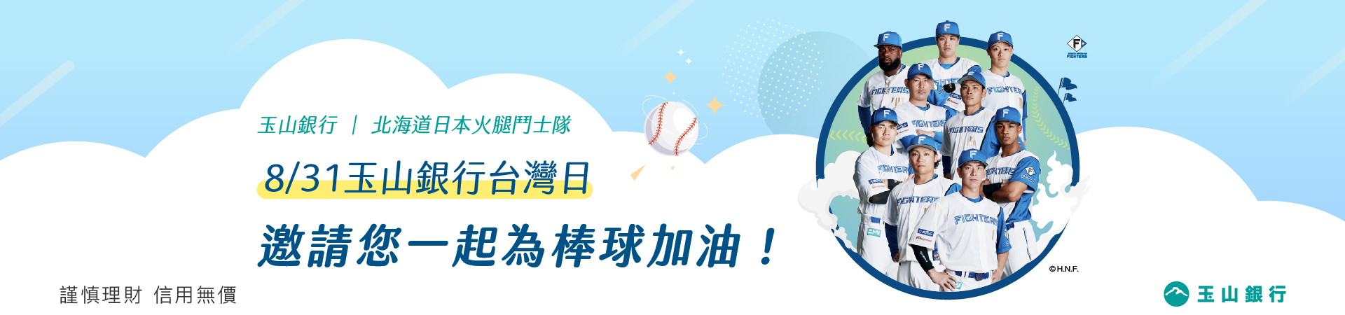 8/31北海道日本火腿鬥士隊X玉山銀行台灣日~邀你一起為棒球加油!