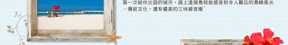 玩美沖繩沖繩的氣候沒有像東南亞般的炎熱,非常適合愛美又愛玩的姐妹們一起出國的最佳首選。獨一無二的海博公園更是必去景點,沖繩的飲食多為蒸與燉,適合養顏美容的女性,別忘了,一定要試試沖繩苦瓜喔!$19,800起