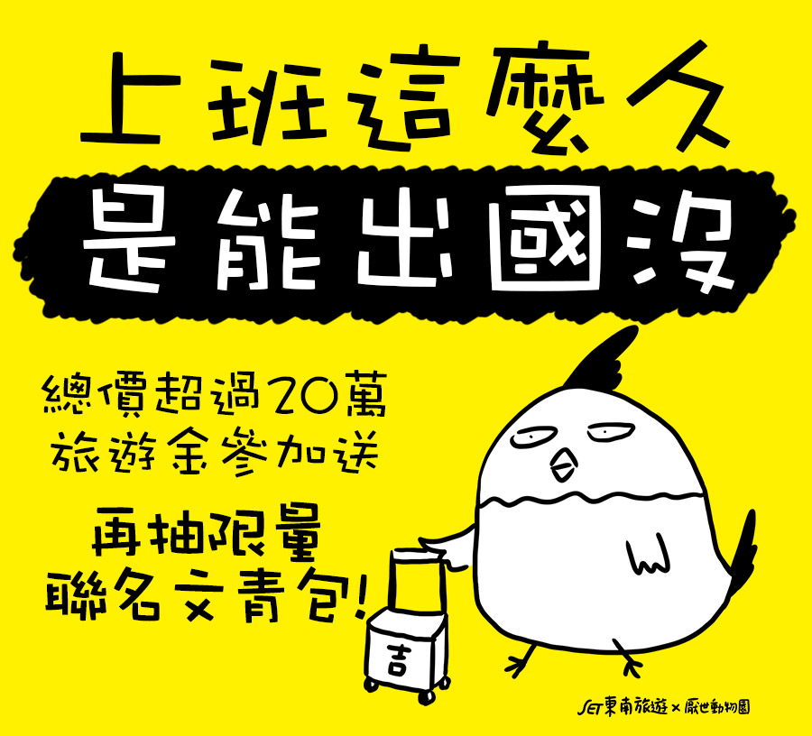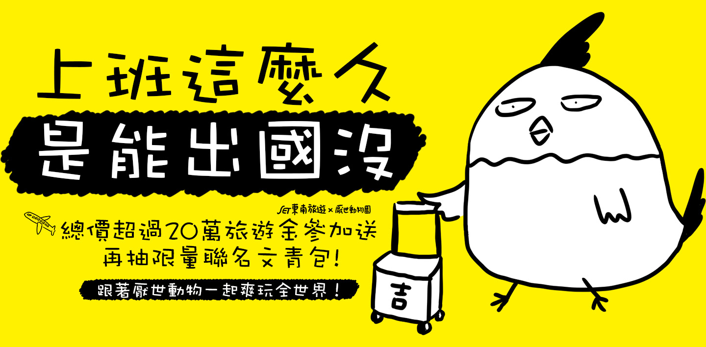 直接送《東南旅遊》x《厭世動物園》聯名文青手拿包,數量有限、送完為止