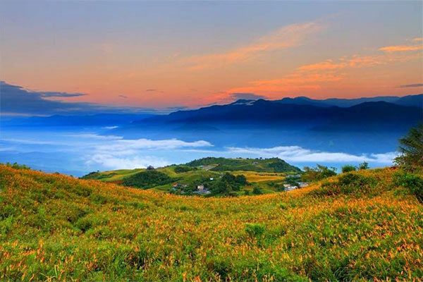 因地勢關係有種遺世獨立的清幽,突出於縱谷間居高臨下,是俯瞰花東縱谷和秀姑巒溪最佳景點,在藍天白雲下的六十石山金針花海,美到快門按不停,開滿山丘的金針花,彷彿成了金色山脈,最美金色大地花毯,暑假玩花蓮必遊景點,一起出發!漫遊唯美金針花季。