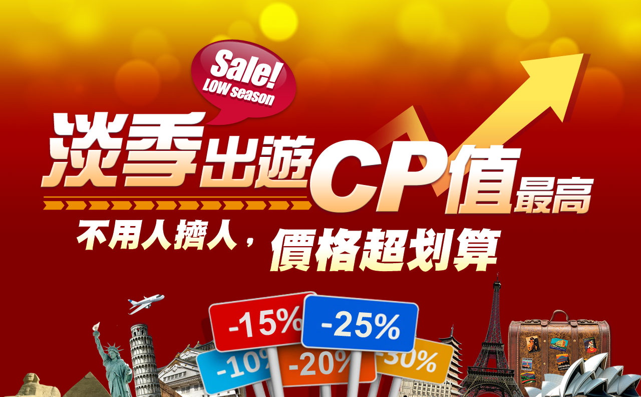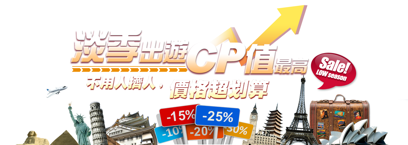 活動期間於網路下單,訂購以下航點行程,立即享好康!(折價優惠限佔床者)