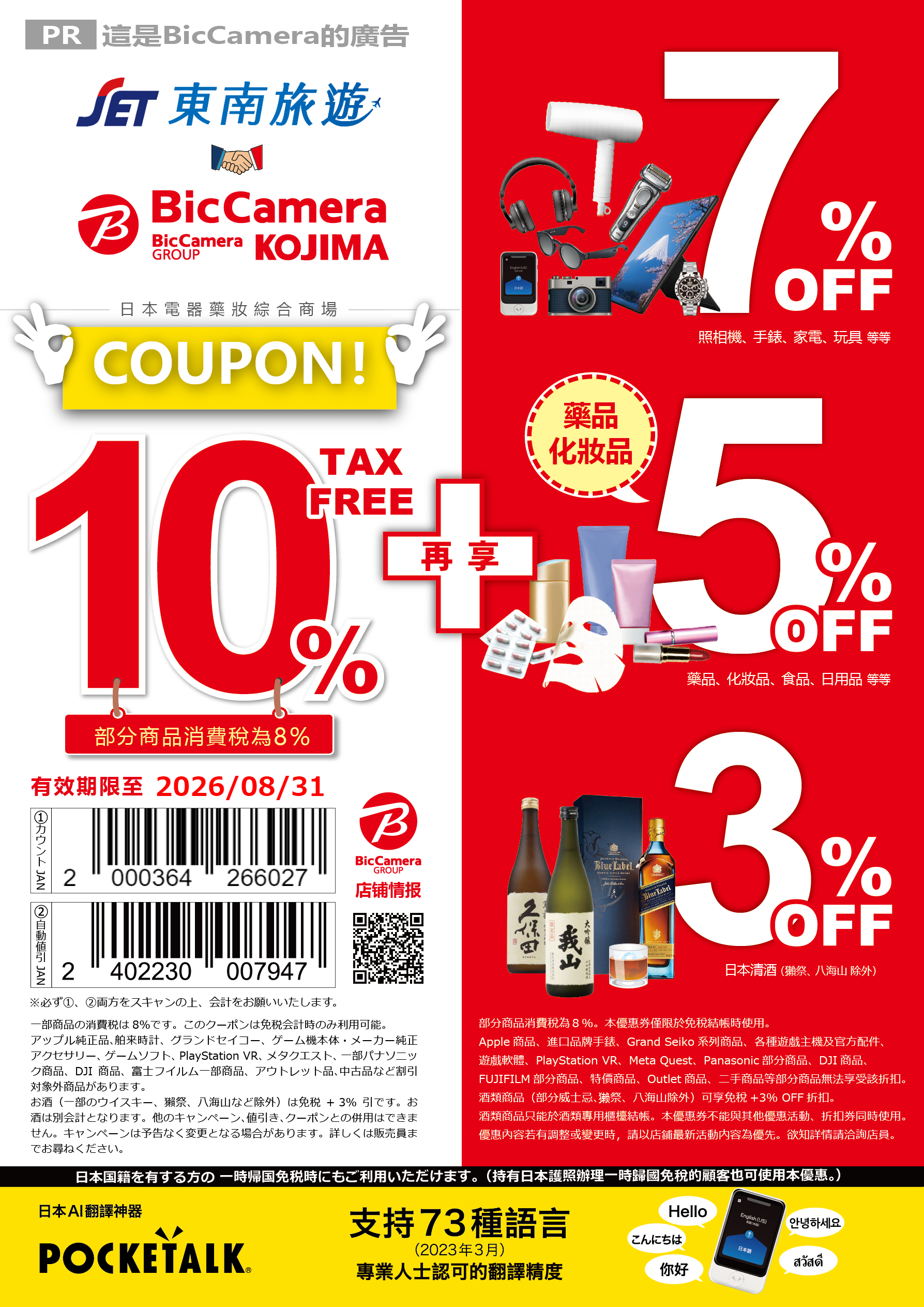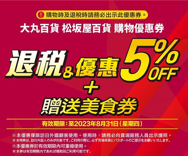 大丸松坂屋百貨免稅&優惠5%OFF+送美食券