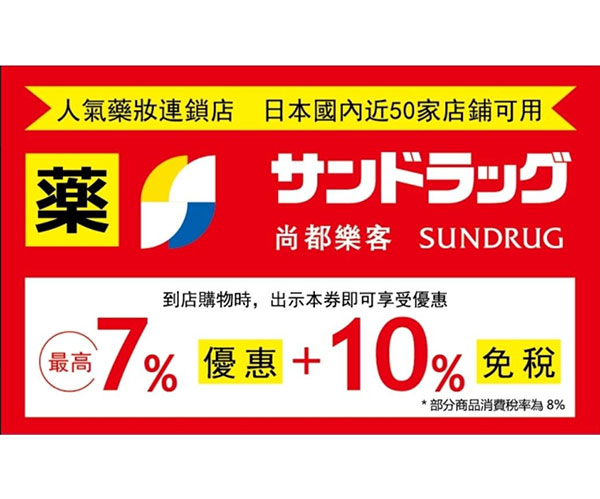 尚都樂客 SUNDRUG最高享10%免稅+7%OFF