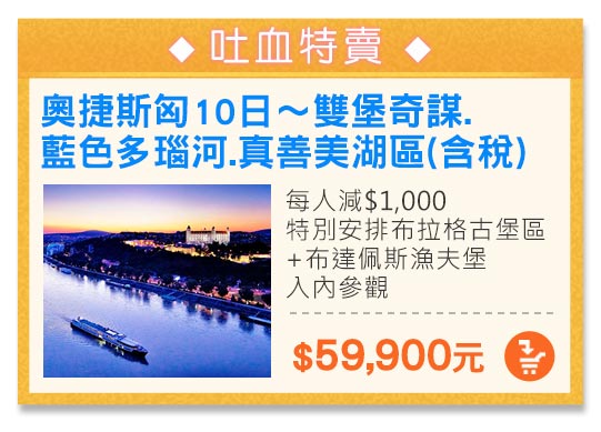 奧捷斯匈10日~雙堡奇謀、藍色多瑙河、真善美湖區、歐式料理七品(含稅)