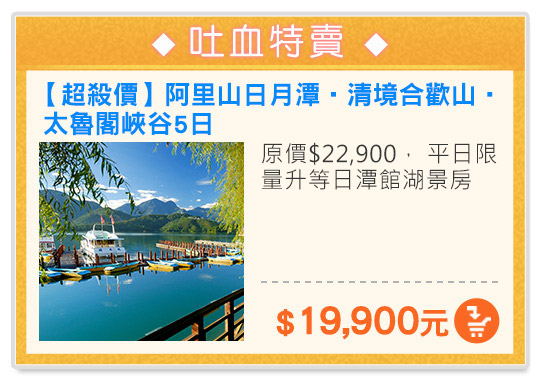 5/18前付訂,佔床第二人折扣$200、在阿里山綠海中,體驗不一樣的清涼感
