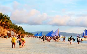 綿延4公里粉末般白沙灘,搭配藍天碧海的綺麗風光,是世界三大最美的白沙灘之一,更是外國人的最愛!於長灘島上有腳踏車和摩托車出租,可以悠哉地探索島上的每個角落,此外還有騎馬活動及許多水上活動,如:潛水、浮潛、釣魚、水上摩托車、風浪板、香蕉船、拖曳傘、獨木舟等,而晚上還可享受別有風味、熱力十足的沙灘、街道夜生活。
