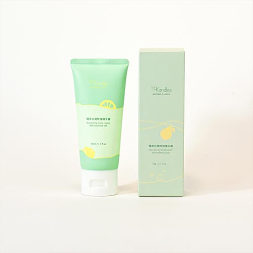 驕陽暖暖, 冷氣房裡的雙手卻依然乾燥粗糙嗎?想擺脫黏膩厚重感的護手霜, 你需要真正的有效保濕及修護成分來呵護你的雙手。快開啟TFKandles精萃水潤修復護手霜, 召喚療癒系萊姆精靈!檸檬奶油一般的清新絲滑質地, 內含滿滿的保濕修復成分。滋潤的乳木果及玫瑰果油舒緩乾荒肌, 珍貴的摩洛哥堅果油及維他命B5有效修護指緣脱皮, 再注入水潤玻尿酸與天然蘆薈, 玫瑰純露等保濕因子, 從此告別乾紋與裂痕, 還你滑嫩又光澤的雙手! 無人工香精/香料 (純植物精油配方芳香療癒) 成分溫和親膚 , 敏感肌適用。 使用方式:適量塗抹於雙手, 輕柔按摩至完全吸收。