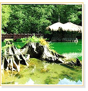 淒美的傳說,據說是當時在現場幫遊客攝影謀生的攝影師,所杜撰編造的。姐潭中以被伐檜木樹頭為基座,建有木造亭台「相思亭」以藍天、白雲、青山、綠水、相思亭倒影,為此處經典攝影背景!