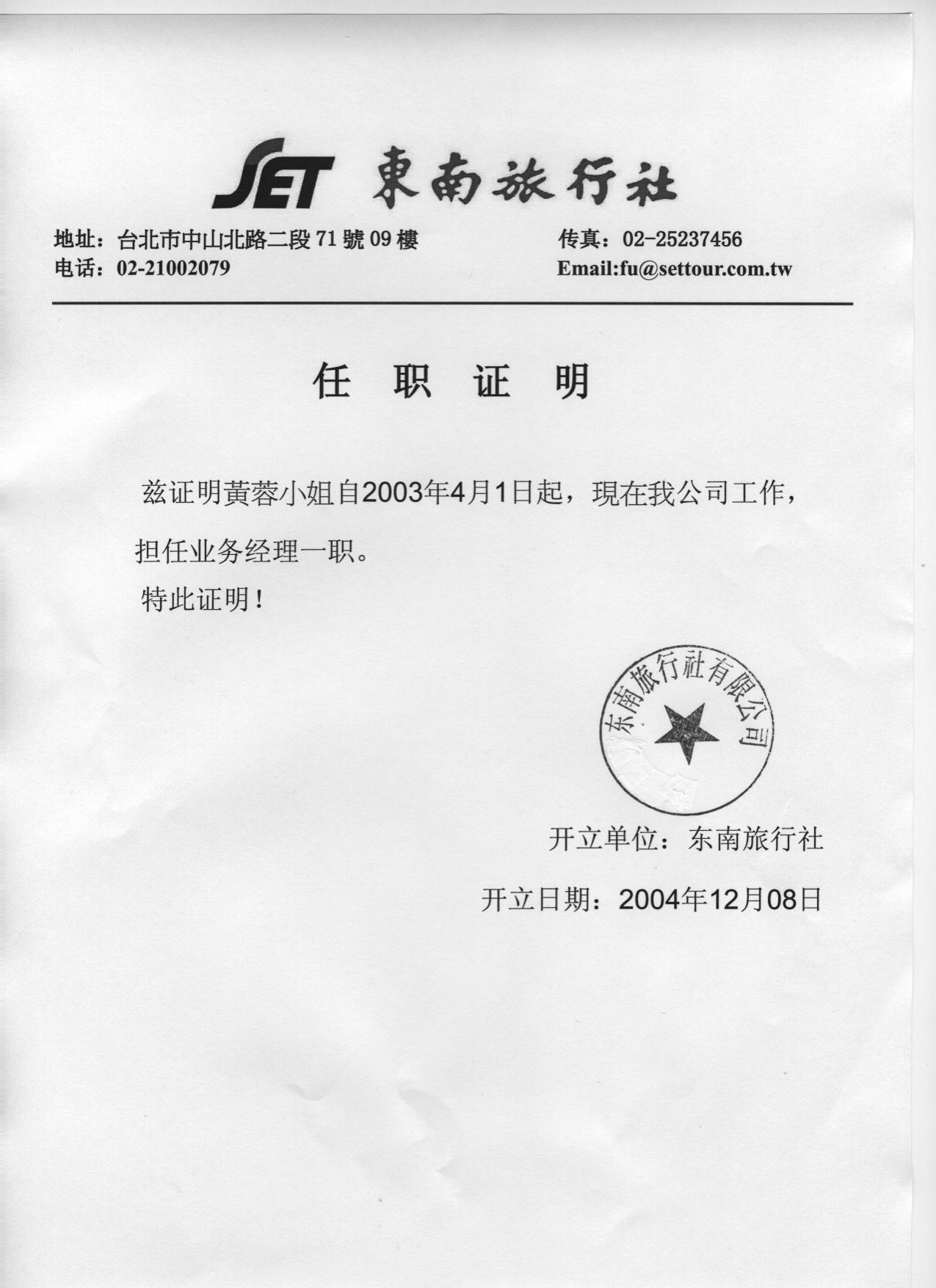 - 在職證明書正本(需蓋公章)。