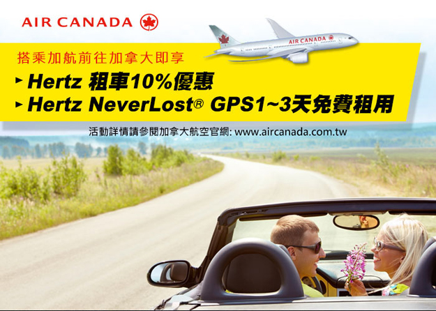 加拿大航空-搭乘加拿大航空前往加拿大 即可享Hertz租車優惠