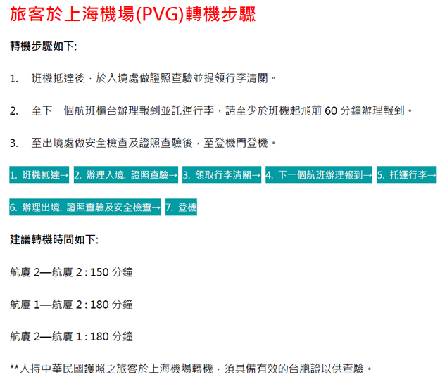 加拿大航空-旅客於上海機場(PVG)轉機步驟