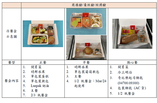 同時,機上一般餐食將改以餐盒發放。請參考以下示意圖。