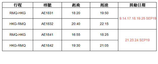 華信航空-台中-香港航班取消通知