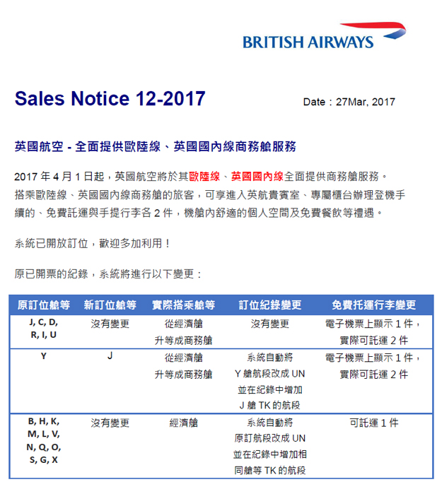 英國航空-全面提供歐陸線、英國國內線商務艙服務