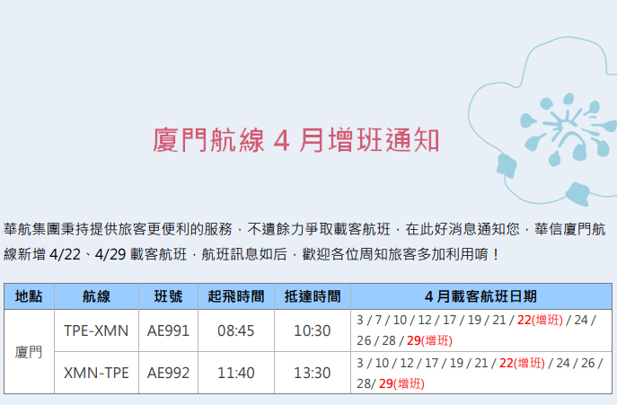 中國南方航空-有關台北-廣州航線換大機型提醒通知