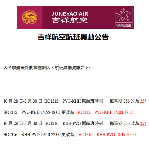 中國南方航空-有關台北-廣州航線換大機型提醒通知