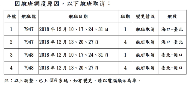 中國南方航空-有關台北-廣州航線換大機型提醒通知