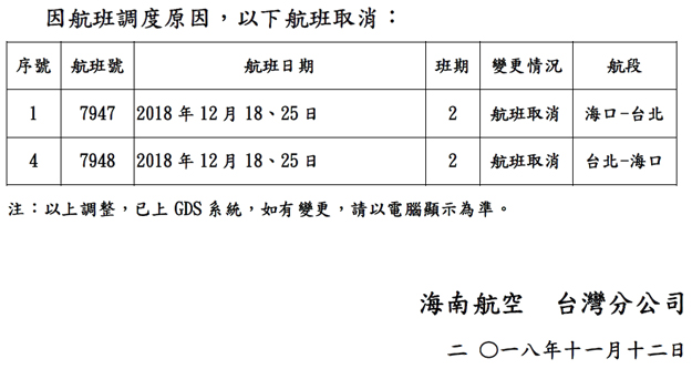 中國南方航空-有關台北-廣州航線換大機型提醒通知
