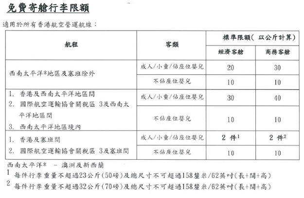 HX香港航空--關於修訂托運行李規則<新增塞班島航線說明>