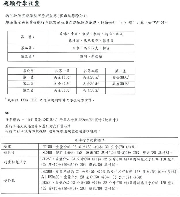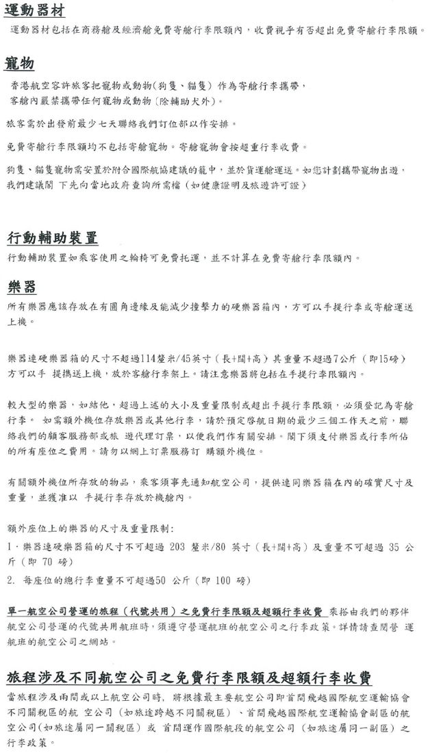 香港航空-關於修訂托運行李規則<新增塞班島航線說明>