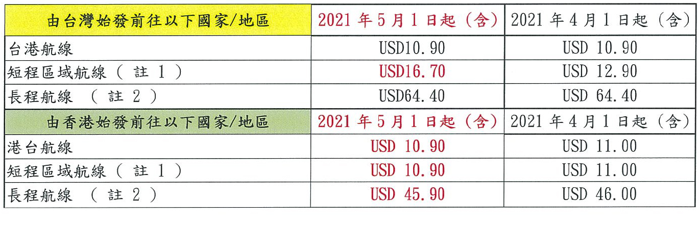 香港航空-燃油附加費調整通知