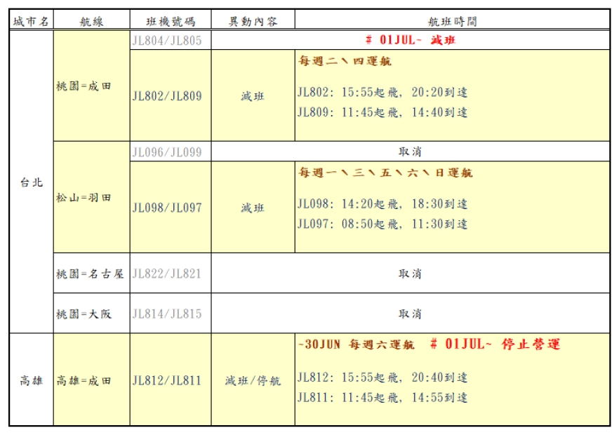 中國南方航空-有關台北-廣州航線換大機型提醒通知