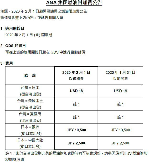 全日空航空-燃油附加費