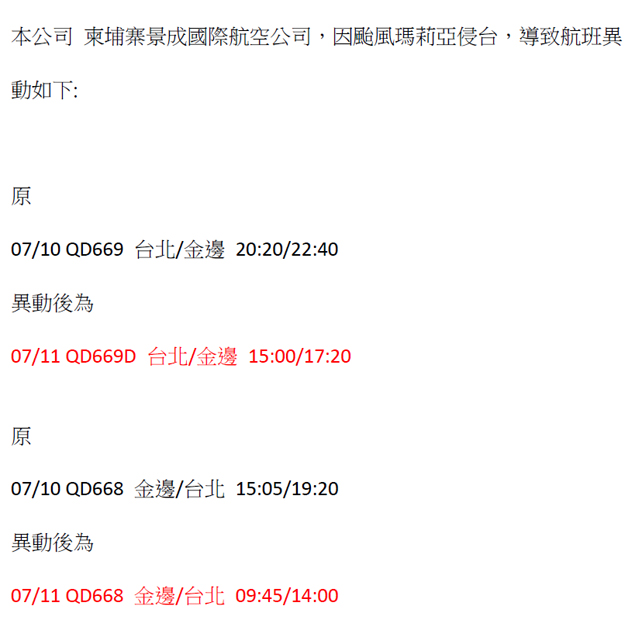 中國南方航空-有關台北-廣州航線換大機型提醒通知