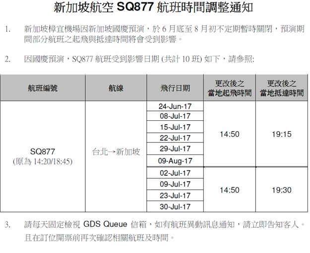 中國南方航空-有關台北-廣州航線換大機型提醒通知