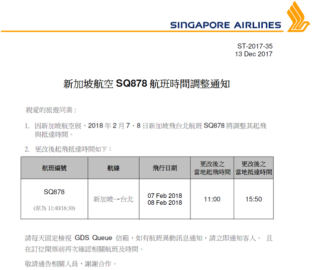 中國南方航空-有關台北-廣州航線換大機型提醒通知