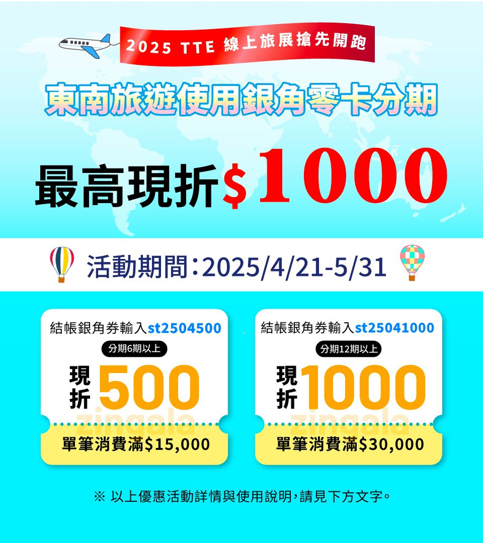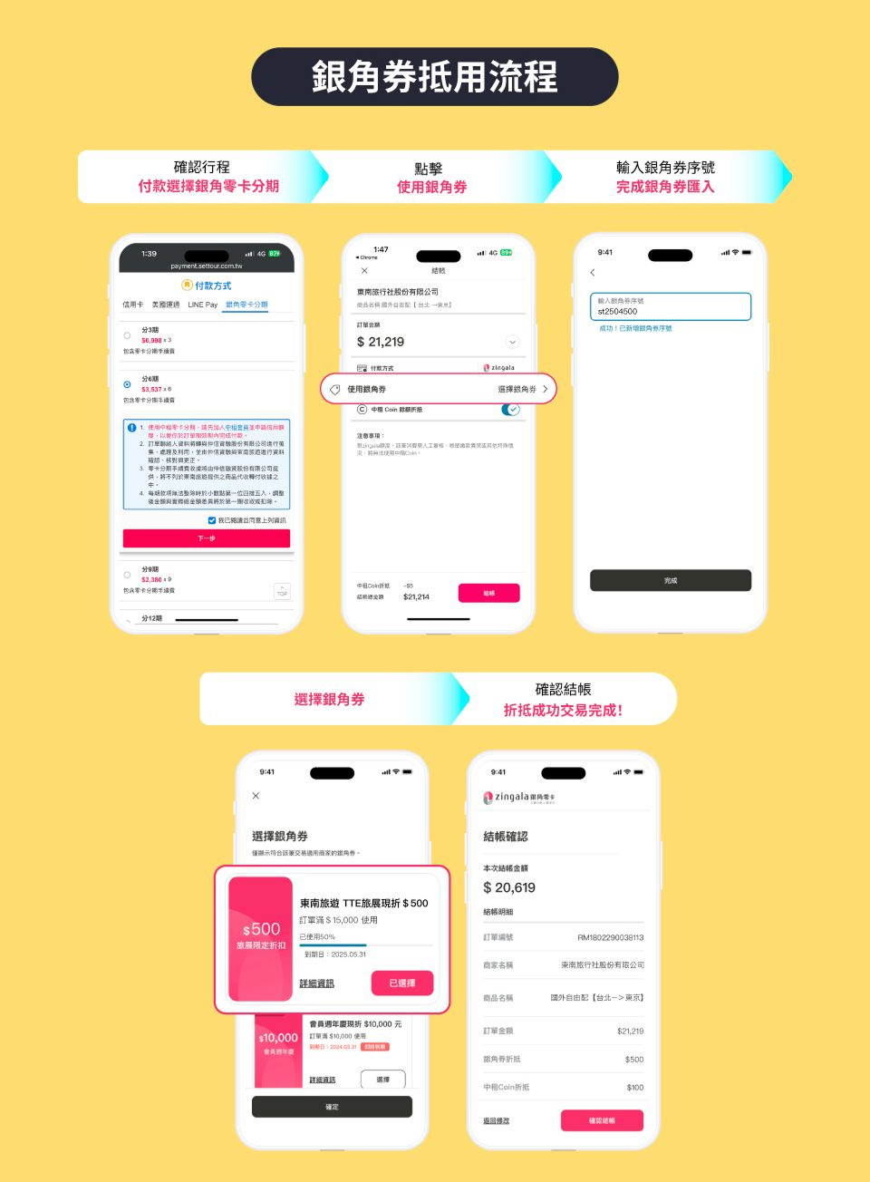 銀角零卡分期僅限使用一次付清或尾款;旅平險、國內外票券、國內訂房、全商品訂金不開放使用。