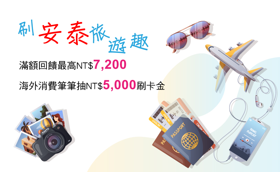 刷安泰旅遊趣 滿額回饋最高$7,200 海外消費抽$5,000刷卡金