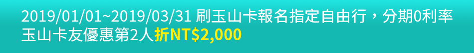 - 1. 本專案限活動時間內報名且繳付本人及同行者之全額費用並請《主動》告知為《玉山銀行信用卡》卡友,持卡本人必須參團,方可享有優惠折扣,每卡限訂4人。