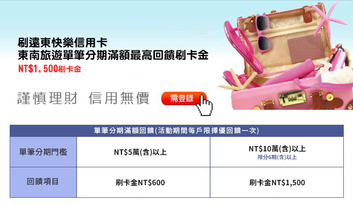 旅遊刷遠東,最高回饋NT$15,000刷卡金