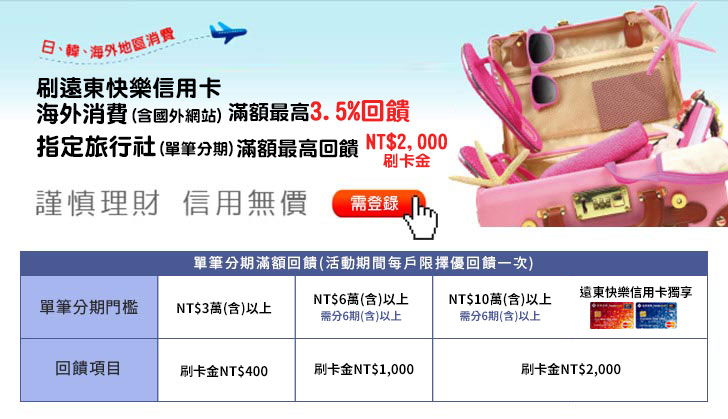 旅遊刷遠東,最高回饋NT$15,000刷卡金