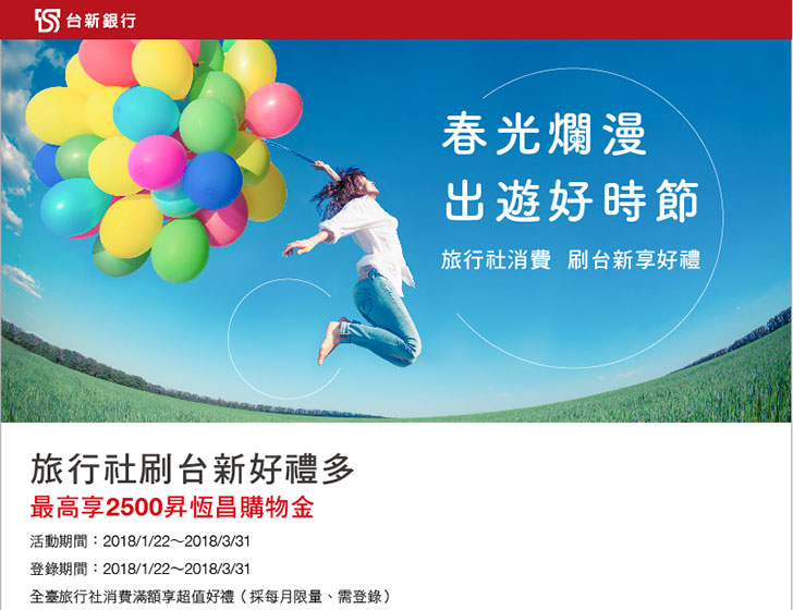 - 台新銀行與各旅行社保留審核持卡人參加活動資格及修改本活動之權利。