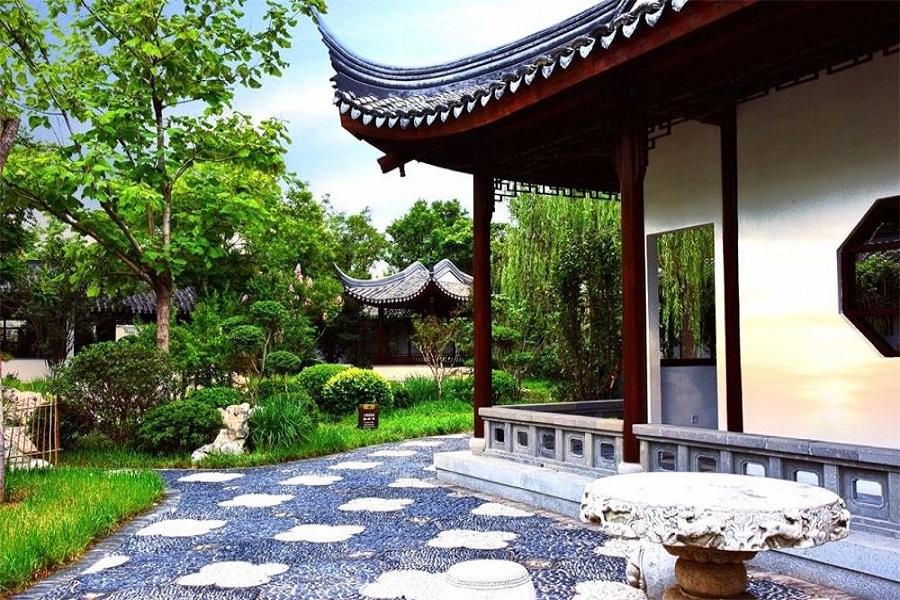 問津園初建於清順治年間,是天津歷史上有文字記載的第一座私家園林別墅。問津園由入口廣場及浣煙沉碧、遂閒雅敘、篆水映月、垂虹瀲灩4組景觀組成。園林布局按照江南園林空間從小到大羅列變化的特點,符合中國人含蓄的審美哲學,尤其是園內處處可見南方園林里典型的蠍子尾飛角,營造出古建築小巧輕盈飛動輕快的韻味。