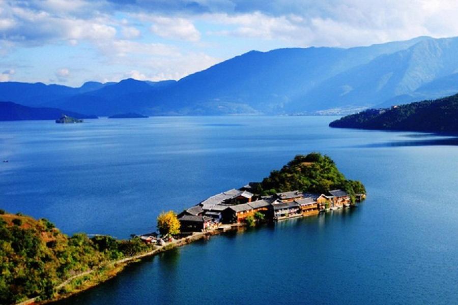 三面環水北面是與陸地接壤的一條小路,只有2米寬,走完小路相當於繞著轉山包轉了一圈。島上除了有當地居民幾百年的古老住所,另外還分佈著幾家景色很棒的臨湖客棧。早晨的里格半島很神秘,被晨霧所圍繞,從島外看起來若隱若現,宛如仙境。