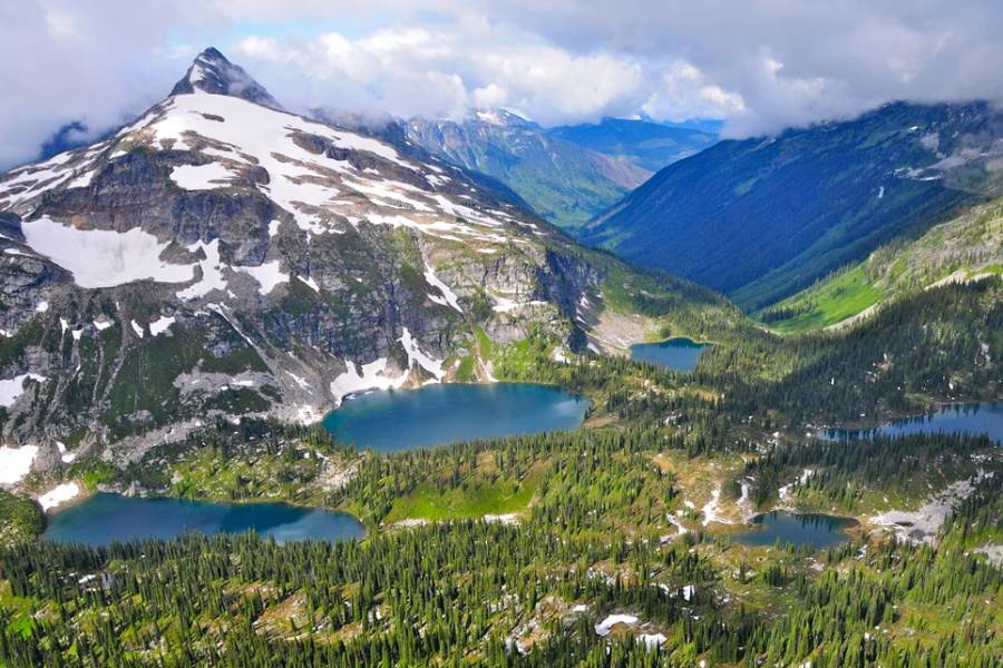 位於優鶴國家公園內,湖畔圍繞著高低起伏的山群,將翡翠湖襯托的美麗動人,優美的色澤是因為湖水為冰河雪水溶解、注入湖泊內,沖刷過程中夾帶大量冰漬石粉、磷礦等物質,沉積於湖底,經由陽光照射呈現祖母綠寶石的色澤。