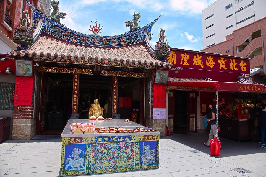 位於迪化街1段的霞海城隍廟,建於西元1856(咸豐六年),雖沒有巍峨之廟貌,然其信仰圈極廣、香火鼎盛,每逢迎神賽會總是熱鬧非凡、位為地方大事,與大稻埕的地方發展息息相關。城隍廟內主祀霞海城隍老爺,從祀二判官(文、武判)、謝范二將軍(七、八爺),配祀三十八義勇公。城隍夫人、八司官、八將軍、馬使爺、及月下老人等。