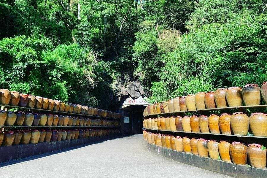 站在隧道入口就可聞到坑道內濃郁的酒香,入口兩側酒甕形成八字彷彿要走進時光隧道,隧道內保留戰車坑道原貌就像藏著許多歷史故事,因隧道恆溫作用,冬暖夏涼很適合儲藏酒品,儲存著許多超過十五年的陳年老酒,走進坑道也會感受到一股涼爽,另外坑道的次要通道也排列著又高又大的儲酒槽相當壯觀,隱密的戰備坑道內酒香四溢,置身其中令人微醺,神秘色彩也讓人有無限遐想。