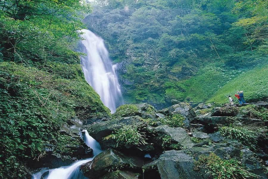 瀑布位在五座險峻山峰之前,是礁溪鄉著名的風景區。瀑布全長約 100 公尺,共分為三層。 上層瀑布約 5 0 公尺,自峽谷奔流而下,中層瀑布由山壁中穿出,約 30 公尺,立於「觀瀑亭」以極佳之視野近賞急瀉之姿,亦可遠眺翠綠山谷,下層瀑布約 20公尺,自然形成小水潭,潭 水清澈順流而下,水質清澈,清涼無比。