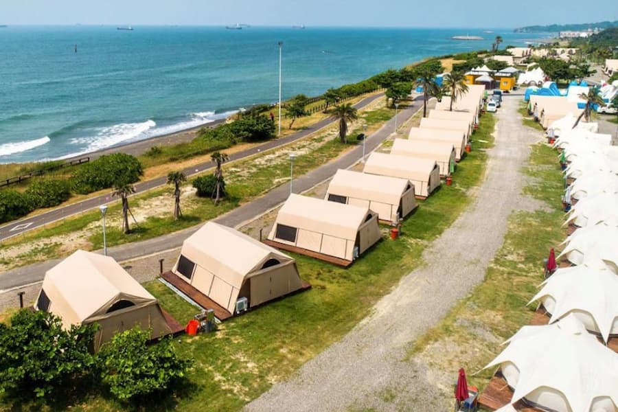 設施完善,狩獵障內備有一對一變頻冷氣、獨立筒彈簧床、配備一桌四椅、卡式爐、煎烤盤。 全台豪華露營區,可玩水、戲沙、騎單車、吹海風、觀夕陽、看星空、賞商船、飛機、燈火。 10分鐘內可到旗津老街、海水浴場、渡船頭,餐廳賣場遍布,補給用餐沒問題!適合一群好友、全家體驗,免搭帳、免收帳,輕鬆享受露營樂!