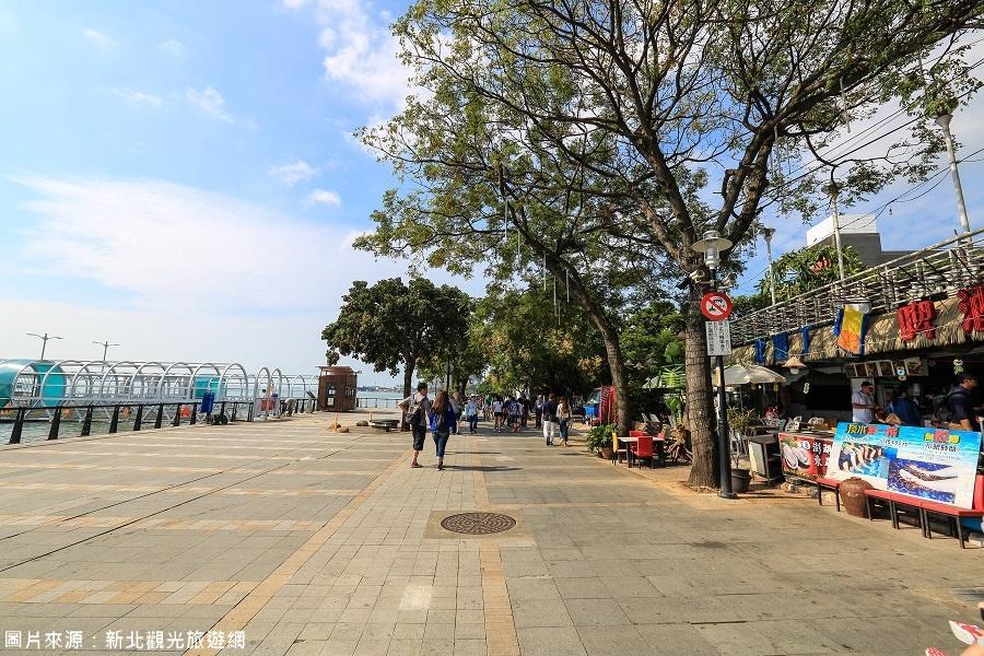 從八里渡船頭到十三行博物館之間,目前規劃有完善的自行車道,並設置休閒設施以供遊憩,很適合租借腳踏車,沿路賞玩左岸各個景點。值得一遊的景點有:可供乘涼歇息的老榕碉堡、適合騎自行車兜風遊賞淡水河風光的左岸公園、假日常有戶外表演活動的左岸劇場、可供登高望遠的左岸會館。