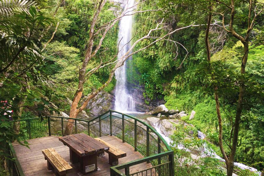 長春祠屬壺穴地形,祠旁湧泉長年流水成散瀑,又名為「長春飛瀑」,成為中橫公路具特殊意義的地標。唐式風格建築依地勢嵌入山壁間,清新的泉水自山壁湧出,形成一道飛瀑,如同一幅秀麗的國畫圖像。剛整修完的浪漫紅橋跟斷橋成為最新打卡熱門景點,來到這裡可挑戰站在紅橋上以上帝視角往下拍斷橋,搭配旁邊峽谷景觀彷彿是無敵的雜誌照。