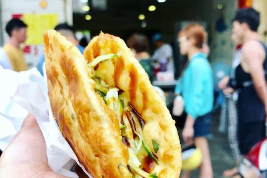 澎湖排隊美食之一的鐘記燒餅,招牌口味:干貝蔥蛋加油條燒餅,其它還有叉燒豬肉加蔥蛋燒餅、干貝醬起司蛋餅也很受歡迎,從水缸烘烤出來的燒餅吃起來外酥內軟,只有在澎湖才能吃到這種充滿海味的燒餅。