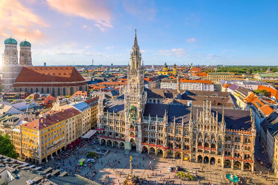位於德國慕尼黑的「聖母教堂」,不僅是慕尼黑當地最大的教堂,也是最能代表慕尼黑的建築地標和精神象徵。聖母教堂至今已有500餘年之久,整體建築風格以晚期的歌德式風格,沒有過多的裝飾、雕刻等,讓它更顯得莊嚴許多;因主建築與教堂尖頂非同時期完成,相差50餘年,因此哥德式風的尖頂被文藝復興時期的圓塔取而代之。