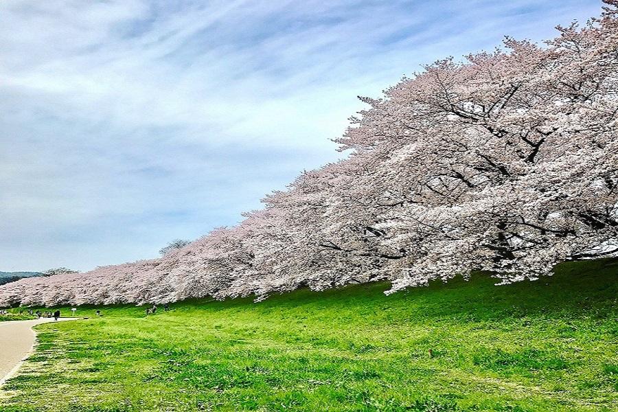 從京阪八幡市車站往北,渡過御幸橋的地方。在木津川和宇治川合流的分開堤種的櫻並木有約1.4km,到了春天會有約250株的染井吉野櫻點綴該地,在4月上旬造成櫻花帶。成為河川公園的周邊有草坪廣場和展望所,也在日本知名雜誌票選為『關西必訪賞櫻名勝排行榜』也獲選為No.1的地點。
